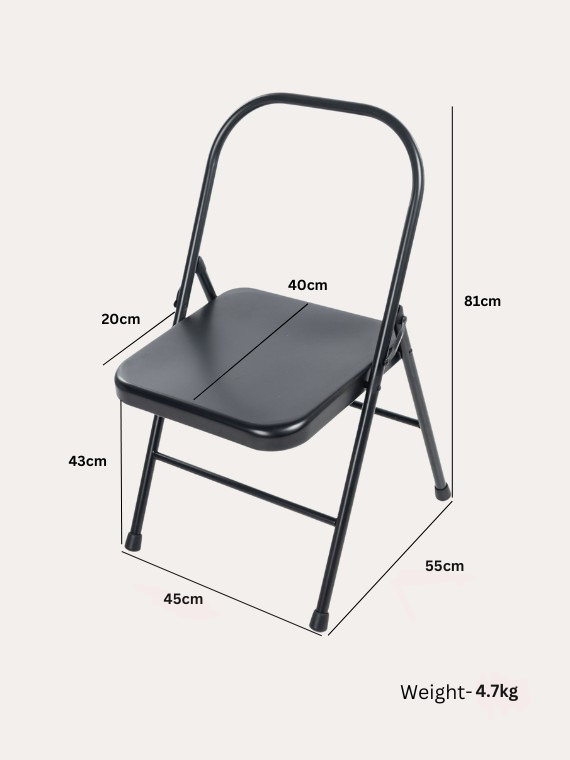 כיסא יוגה ממתכת יציב וחזק. יכול לשמש מתרגלים מתחילים ומתקדמים כאחד. אביזר המאפשר תמיכה, דיוק, אתגר והעמקת התנוחה.